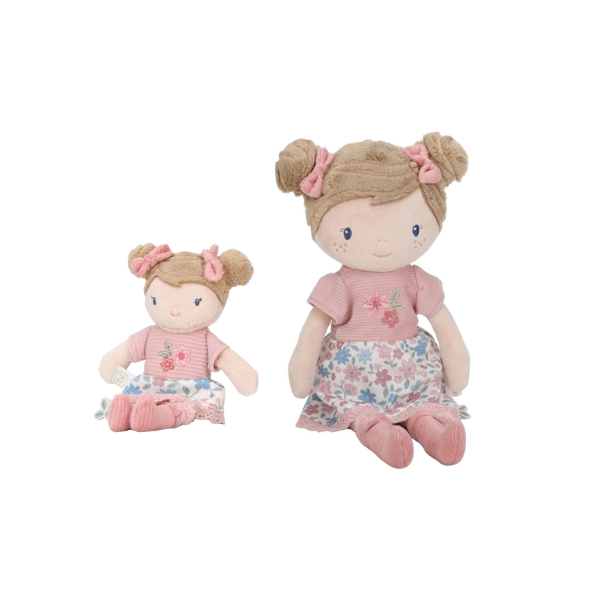 La Muñeca Blandita Rosa Little Dutch está disponible en dos tamaños, lo que permite adaptarse a diferentes necesidades. El modelo de 35 cm es perfecto para abrazar y utilizar como muñeca principal en el juego, mientras que el modelo de 10 cm es ideal para llevar a cualquier parte.