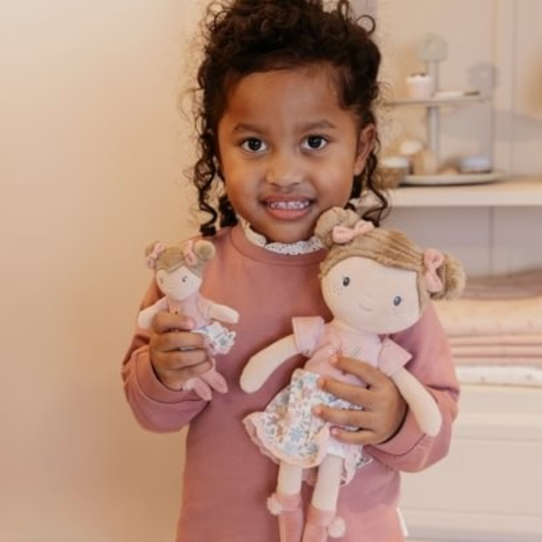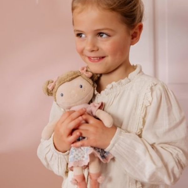 El estilo característico de la marca, con colores suaves y detalles cuidados, convierte a la Muñeca Blandita Rosa Little Dutch en un juguete visualmente atractivo que encaja perfectamente en cualquier entorno infantil.