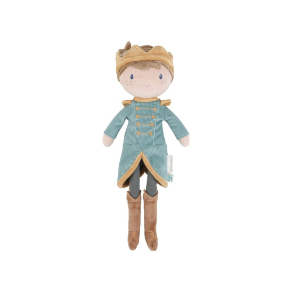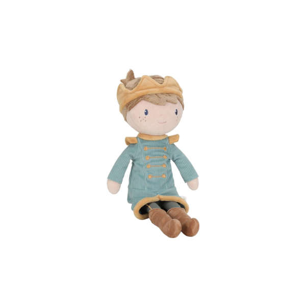 El Muñeco Blandito Jim Príncipe Little Dutch destaca por su diseño único inspirado en un príncipe. Jim luce una elegante chaqueta acanalada, una delicada corona dorada y detalles bordados que aportan un acabado sofisticado y lleno de personalidad. Su aspecto cálido y amigable invita a los niños a interactuar con él desde el primer momento.