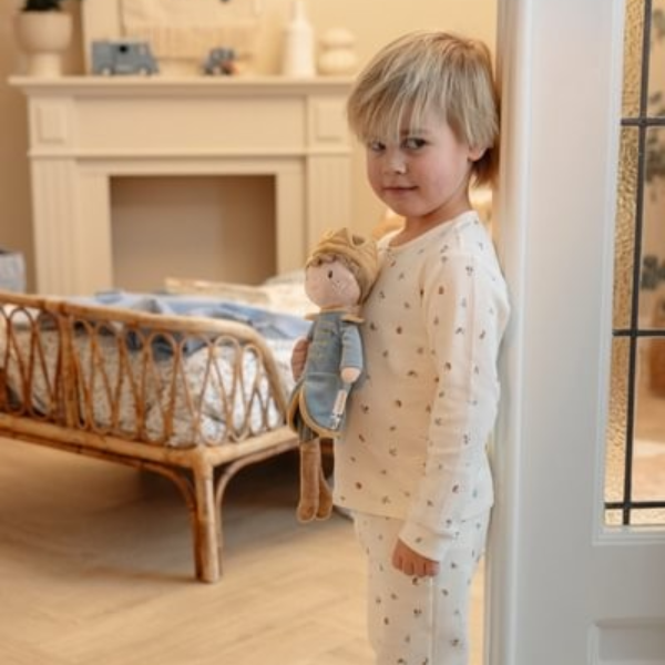 El diseño del Muñeco Blandito Jim Príncipe Little Dutch sigue la estética característica de la marca, con colores suaves, texturas agradables y detalles cuidados que lo convierten en un juguete visualmente atractivo.