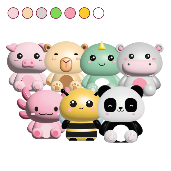 Modelos disponibles: cerdito, capibara, hippo, dino, ajolote, abeja, panda