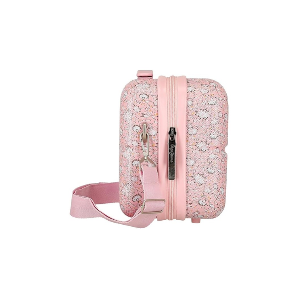 El diseño de la colección Mia de Pepe Jeans aporta un estilo moderno, juvenil y elegante. Este neceser no solo cumple una función práctica, sino que también se convierte en un complemento estético que combina perfectamente con otras maletas y accesorios de la misma colección.