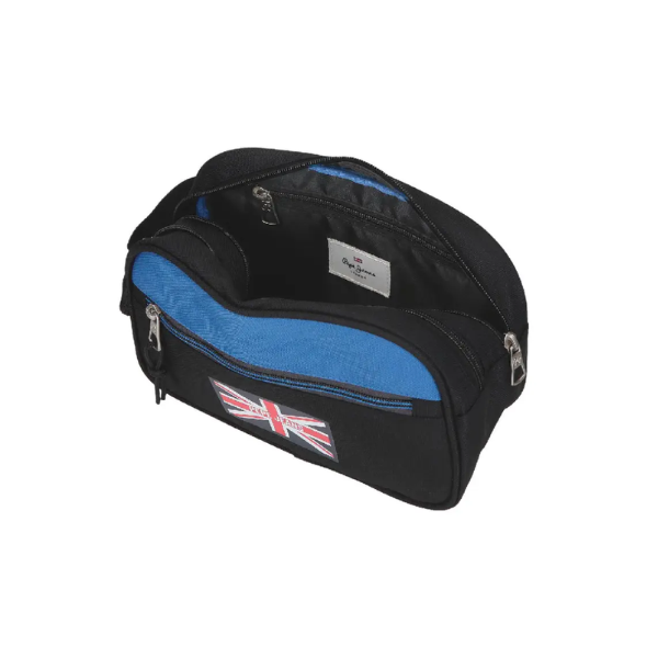 El Neceser Doble Henry Negro Pepe Jeans es la opción ideal para quienes buscan organización, diseño y funcionalidad en un accesorio compacto pensado para el día a día o para viajes. Perteneciente a la colección Henry de Pepe Jeans, este neceser destaca por su estética moderna en tonos oscuros, con el negro como base principal y sutiles detalles en azul que aportan contraste y personalidad, inspirados en la icónica bandera de Inglaterra.