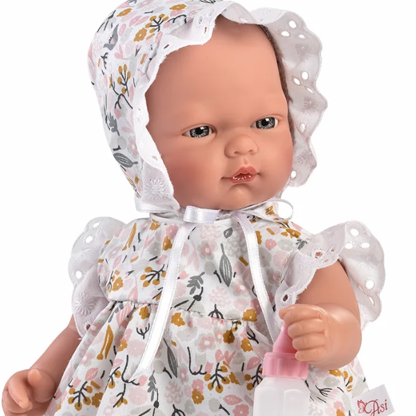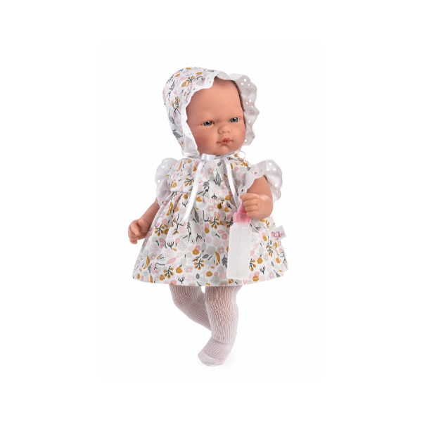 El conjunto de vestido de flores grises y rosas aporta un toque elegante y delicado, combinando tonos suaves que refuerzan la estética dulce de la muñeca. Este diseño floral convierte a Oli en una pieza atractiva tanto para el juego como para el coleccionismo dentro de la Colección Así.