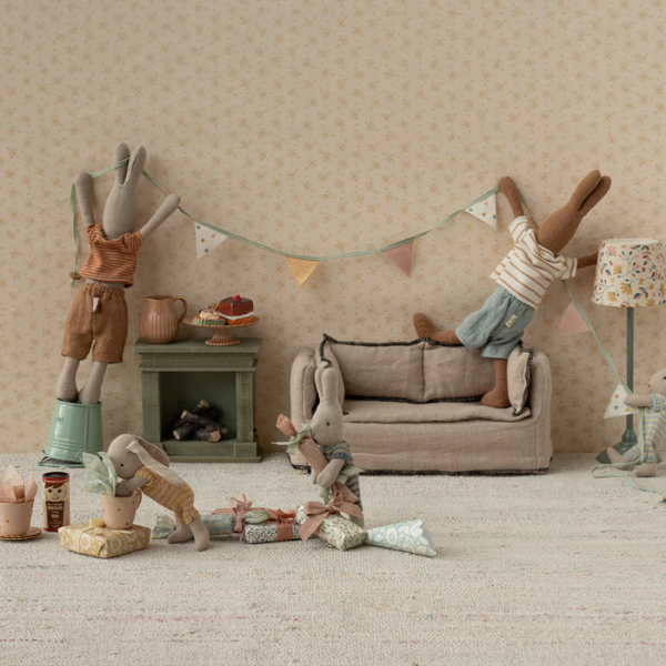 Con unas medidas de 4,5 cm de alto, 8 cm de ancho y 8 cm de profundidad, y un peso de solo 0,07 kg, este conjunto encaja perfectamente en los escenarios de la familia Teddy y en las tallas 1 y 2 de Bunny & Rabbit. Su tamaño miniatura lo convierte en una pieza perfecta tanto para el juego como para la decoración.