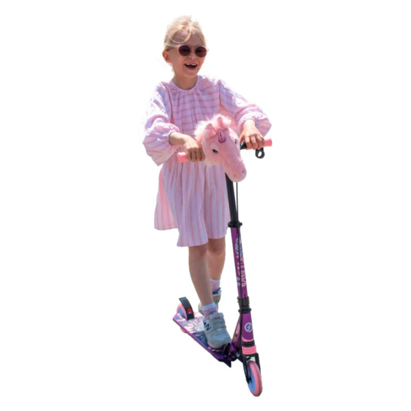 El Peluche Decorativo para el Manillar del Patinete está disponible en seis modelos diferentes para que cada niño o niña encuentre su favorito: dinosaurio, unicornio, erizo, vaca escocesa, pato y oso. Cada diseño está cuidadosamente elaborado para resultar simpático, reconocible y atractivo, aportando carácter propio a cada paseo. Además, su textura extra suave invita al contacto y lo convierte en un elemento agradable al tacto.