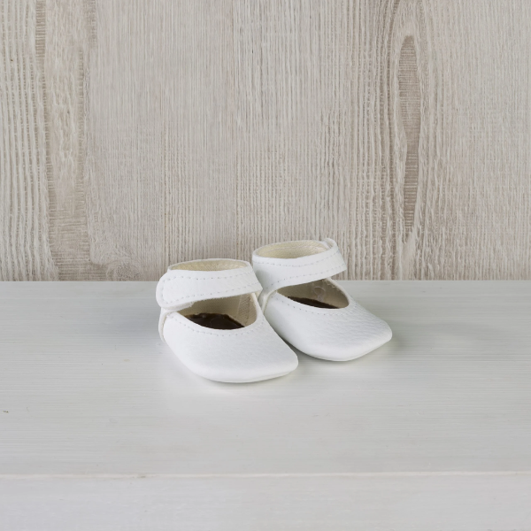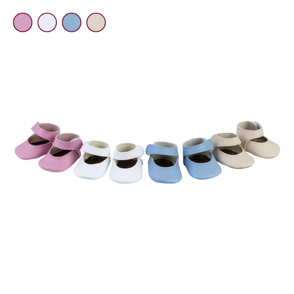 Estas Peuco Merceditas para Muñecos 36-40cm están disponibles en cuatro elegantes colores: blanco, beige, rosa y azul, lo que permite combinar fácilmente con distintos conjuntos, estaciones del año o estilos de juego. El modelo blanco destaca como un básico atemporal, ideal tanto para ocasiones especiales como para el uso diario del muñeco, aportando un toque clásico y refinado.