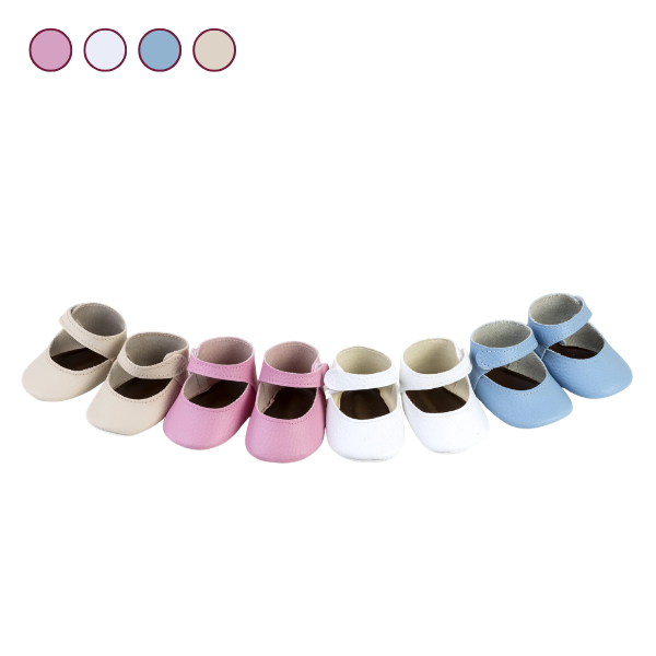 Estas Peuco Merceditas para Muñecos 43-46cm están disponibles en cuatro colores clásicos y versátiles: blanco, beige, rosa y azul. Esta variedad permite combinarlas fácilmente con diferentes estilos de ropa, estaciones del año o conjuntos temáticos, ampliando las posibilidades del juego simbólico y la personalización del muñeco.