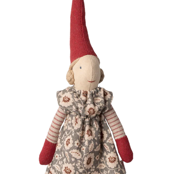 Inspirada en las tradiciones escandinavas, esta encantadora elfa navideña es perfecta para llenar tu hogar de dulzura, color y espíritu festivo. Con su elegante vestido de invierno color menta y su gorro rojo característico, la Pixy aporta ese toque acogedor tan propio de las decoraciones navideñas de Maileg.