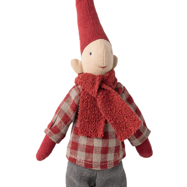 La Pixy Chico Camisa a Cuadros Rojos Tamaño 1 de Maileg es una figura decorativa encantadora que trae el espíritu de la Navidad escandinava directamente a tu hogar.
