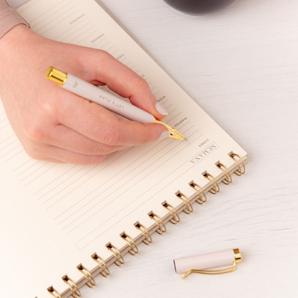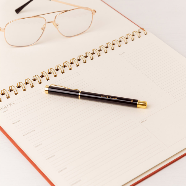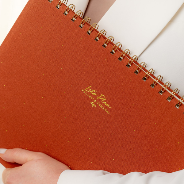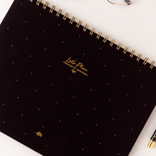 El formato de 21 x 28 cm ofrece amplitud suficiente para escribir cómodamente en cada sección, sin perder la portabilidad y practicidad. Además, el planificador está diseñado ergonómicamente para abrirse 360º gracias a su encuadernación wire-o dorada, permitiendo trabajar sobre cualquier página sin que el lomo se doble o dificulte la escritura.