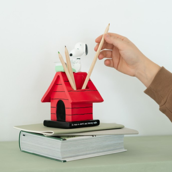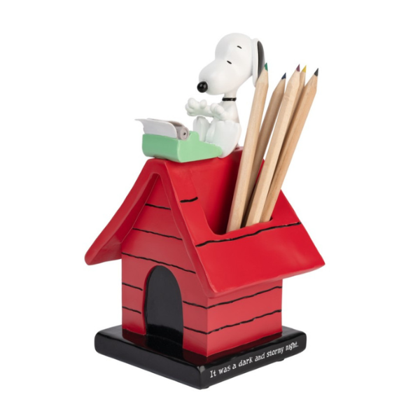 El Portalápices de Snoopy de Erik es el accesorio ideal para cualquier fan del entrañable beagle de Peanuts. Fabricado en resistente resina y con un diseño tridimensional lleno de detalles, este portalápices representa a Snoopy sentado sobre el tejado de su emblemática cabaña roja mientras escribe con su máquina de escribir, una de las escenas más queridas por los seguidores de Charles M. Schulz.