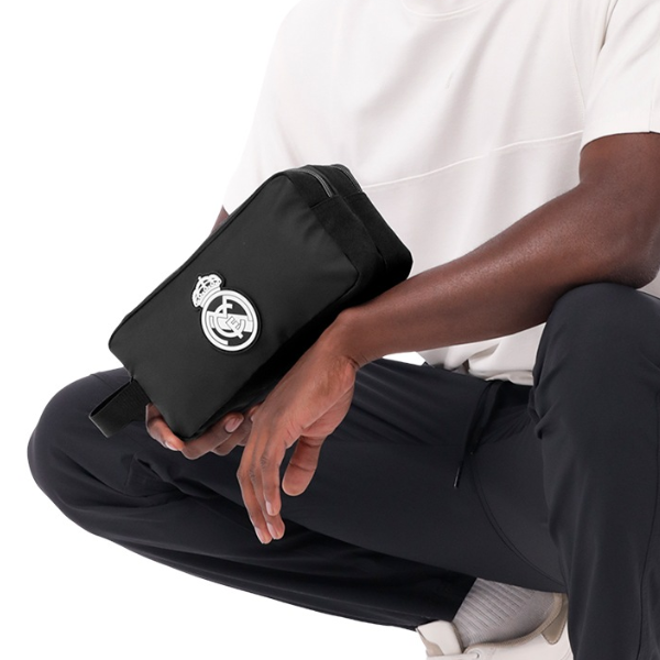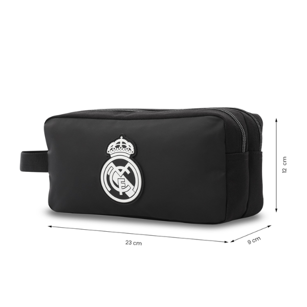 Este portatodo doble Real Madrid Totto destaca por su diseño en color negro elegante, realzado con el icónico escudo del Real Madrid en el frontal, que aporta un acabado distintivo y reconocible al instante. Su estética sobria pero deportiva lo convierte en un accesorio versátil, adecuado para todas las edades y perfecto para quienes quieren llevar su pasión por el fútbol siempre consigo.