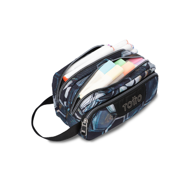 Este portatodo doble Tiza Totto destaca por su diseño compacto y su estructura pensada para optimizar el espacio interior. Incorpora tres bolsillos independientes, lo que permite una organización eficiente del contenido, separando fácilmente distintos tipos de material escolar. Esta distribución ayuda a mantener el orden y a localizar rápidamente cada utensilio, mejorando la experiencia de uso en el día a día.