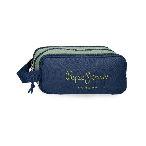 El Portatodo Triple Arwyn Marino Pepe Jeans es un estuche escolar de alta funcionalidad diseñado para ofrecer la máxima organización, resistencia y estilo en el día a día académico. Perteneciente a la colección Arwyn de Pepe Jeans, este modelo destaca por su diseño moderno en tonos azul marino y caqui, una combinación elegante y versátil que encaja perfectamente con el estilo urbano de la marca. El acabado se completa con el distintivo detalle de la bandera de Inglaterra, elemento característico de Pepe Jeans que aporta identidad y reconocimiento inmediato.