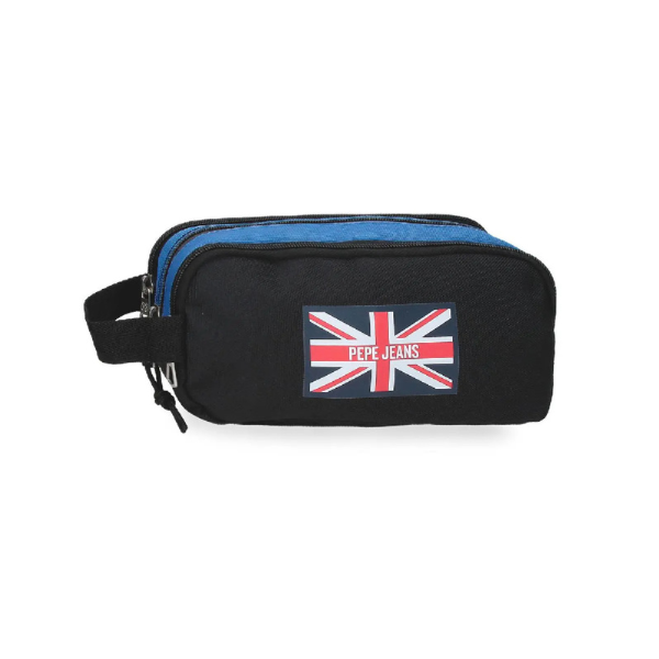 El Portatodo Triple Henry Negro Pepe Jeans es un estuche escolar de alta funcionalidad diseñado para ofrecer la máxima organización en el día a día académico. Perteneciente a la colección Henry de Pepe Jeans, este modelo combina un diseño moderno en tonos oscuros con el negro como protagonista, acompañado de sutiles detalles en azul que aportan contraste y personalidad, inspirados en la icónica bandera de Inglaterra.