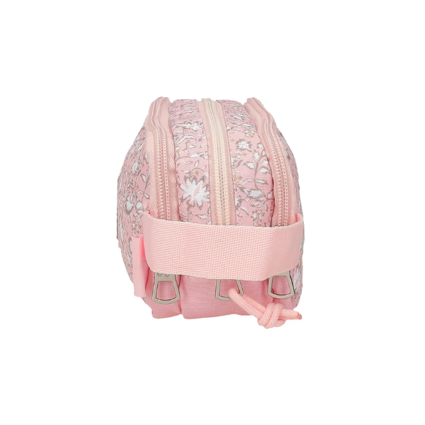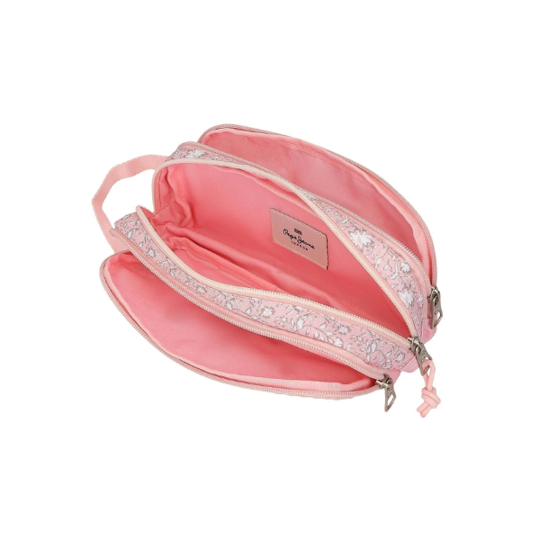 Su principal característica es su estructura de tres compartimentos independientes con cierre de cremallera. Esta distribución permite organizar de manera eficiente todo el material escolar, separando bolígrafos, lápices, rotuladores, gomas y otros accesorios. Gracias a esta organización interna, el Portatodo Triple Mia Rosa Claro Pepe Jeans facilita el acceso rápido a cada elemento, manteniendo siempre el orden.