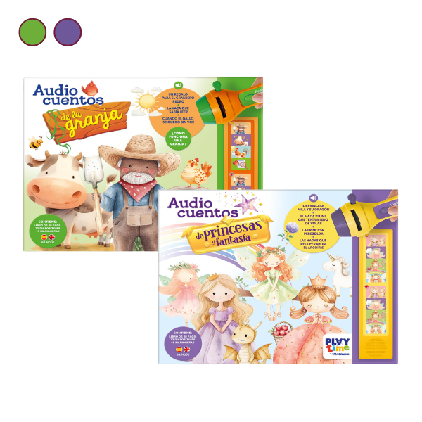 Este producto está disponible en dos modelos: Granja y Princesas y fantasía. Cada versión ofrece contenidos adaptados a diferentes gustos, permitiendo elegir la temática que mejor encaje con los intereses del niño.