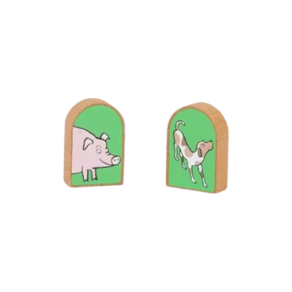 2 bloques de madera (cerdo y perro)