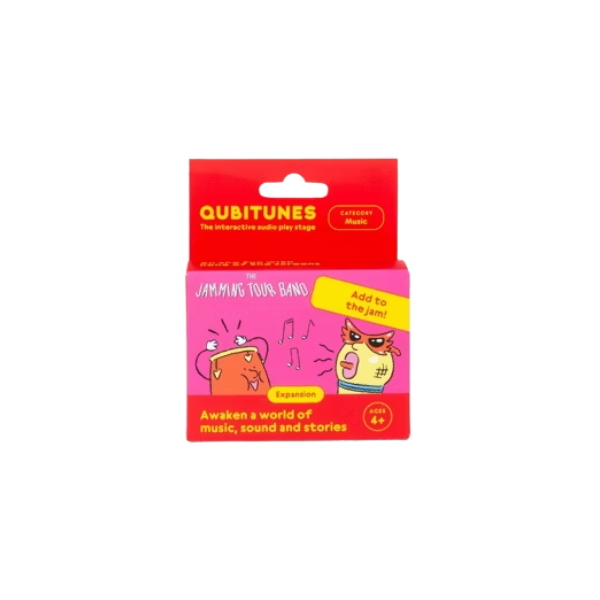 Fabricado en madera sostenible, Qubitunes Expansión The Jamming Tour Band forma parte del innovador sistema Qubitunes, el reproductor de audio interactivo sin pantallas que estimula la imaginación, la creatividad musical y el juego libre.