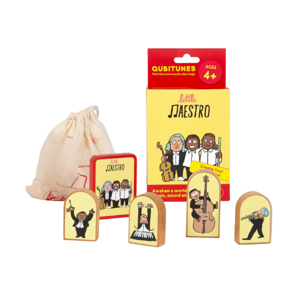 Qubitunes Little Maestro fomenta la imaginación, el ritmo y la sensibilidad artística mientras los niños juegan, aprenden y se divierten sin pantallas. Una forma mágica de introducir la música clásica en el juego diario.