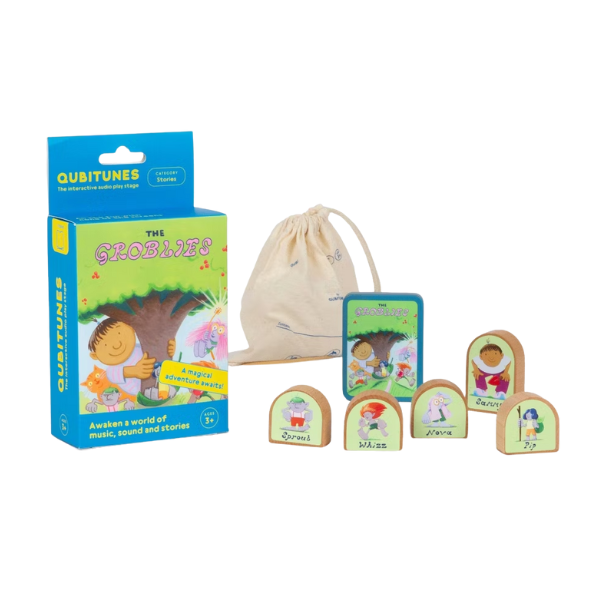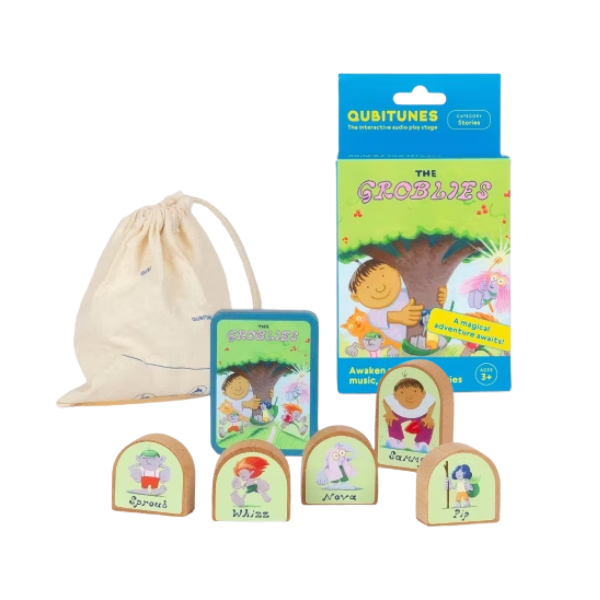 ¡Adéntrate en un mundo mágico bajo las raíces de los cerezos con Qubitunes The Groblies! Este encantador juego interactivo sin pantallas invita a los niños a descubrir el universo secreto de los Groblies: unas criaturas traviesas y entrañables que viven en los parques y jardines de la ciudad.