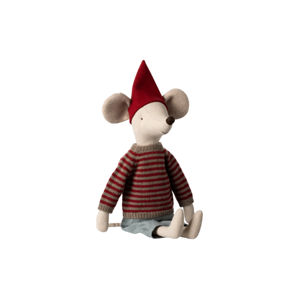 El Ratón de Navidad Maxi de Maileg es la personificación perfecta del espíritu navideño en formato peluche. Con su adorable gorro rojo, su cálido jersey invernal y su tamaño generoso, este entrañable personaje se convierte en el acompañante ideal para decorar, regalar o simplemente disfrutar durante las fiestas.