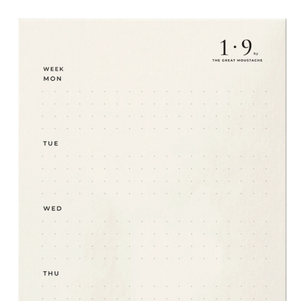 El Set de 10 Tarjetas Organizativas Planificación Semanal 1·9 TGM es la solución ideal para estructurar tu semana de forma clara, flexible y visual. Diseñado para integrarse perfectamente con el 1·9 Planner, este set te permite planificar tus tareas, objetivos y compromisos semanales sin saturar tu cuaderno principal.