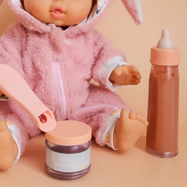 El Set de Biberón y Tarro Mágico de Chocolate Tiny Harlow es compatible con la mayoría de muñecas de entre 34 y 38 cm, como Minikane, Miniland o Paola Reina, lo que lo convierte en un complemento versátil para diferentes colecciones.