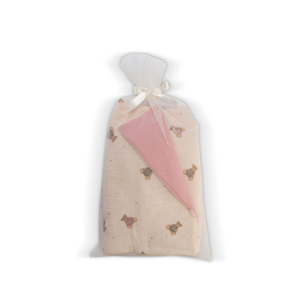 El set se entrega en una bolsa de tul con lazo de raso beige, cuidando la estética y facilitando tanto su almacenamiento como su transporte. Esta presentación convierte al Set Edredón y Almohada Teddy Musa Rosa en un regalo ideal para cumpleaños, Navidad o cualquier ocasión especial.