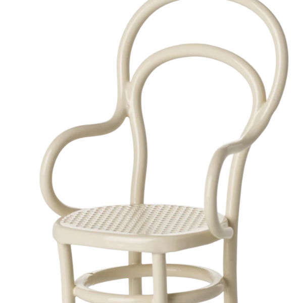 La Silla Vintage Ratón Blanco Roto destaca por su diseño sencillo pero lleno de encanto. Fabricada completamente en metal, ofrece una estructura resistente y duradera que mantiene su forma y color con el paso del tiempo. El acabado blanco roto satinado evoca la estética de los muebles antiguos, aportando calidez, elegancia y un toque nostálgico al universo de juego de Maileg.