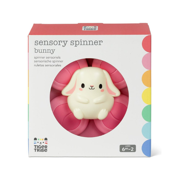 Con cuatro paletas giratorias suaves y resistentes, el Spinner Sensorial Conejo invita a los más pequeños a tocar, explorar y hacer girar el juguete una y otra vez. Gracias a su estructura pensada para manos pequeñas, es fácil de manipular y perfecto para fomentar el desarrollo de la motricidad fina, la coordinación mano-ojo y el aprendizaje de causa y efecto. A medida que el niño gira el spinner, observa el movimiento y escucha el sonido que produce, comprendiendo cómo sus acciones generan una respuesta.