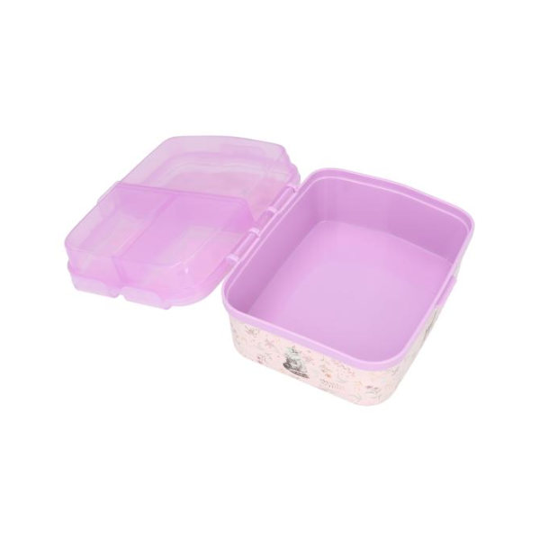 El Táper XL Blooming Kitty TopModel cuenta con un diseño funcional que incluye cuatro compartimentos independientes: tres en la parte superior y uno de mayor tamaño en la parte inferior. Esta distribución permite separar los alimentos de forma cómoda, manteniendo cada tipo de comida organizada y evitando mezclas no deseadas. Es ideal para llevar fruta, bocadillos, snacks o comidas completas de forma práctica.