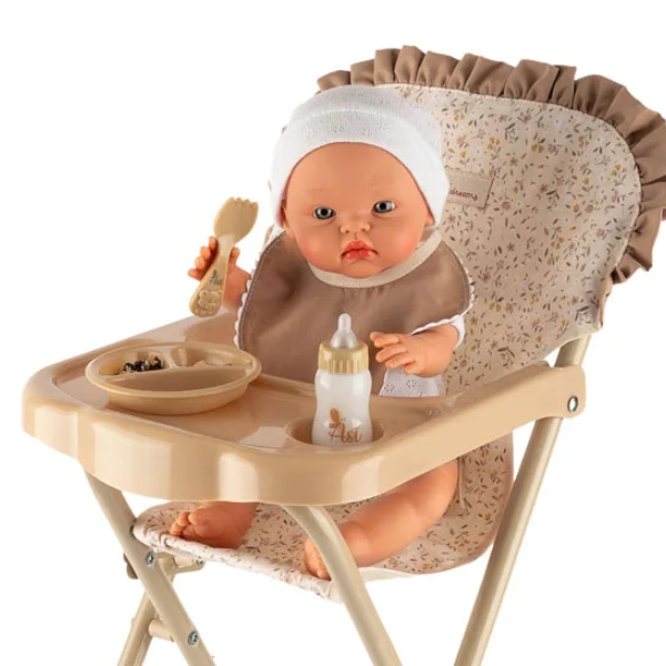 La Trona con Bandeja y Babero Colección Teresa es un accesorio de juego imprescindible para el cuidado de muñecos, diseñado específicamente para muñecas de entre 36 y 46 cm. Fabricada en España por ASIVIL, S.L. bajo la línea ASIDREAMS, esta trona combina funcionalidad, diseño elegante y valor educativo, convirtiéndose en un complemento ideal para el juego simbólico infantil.